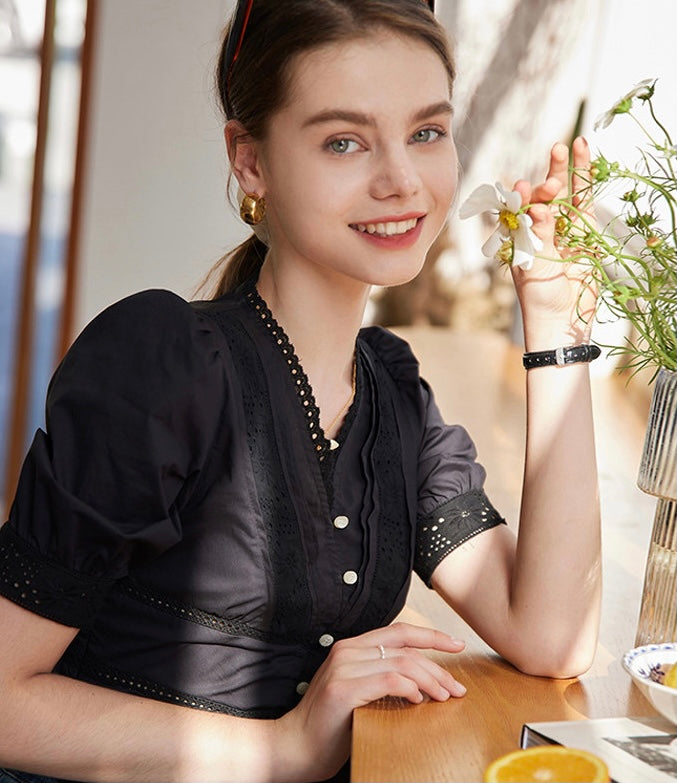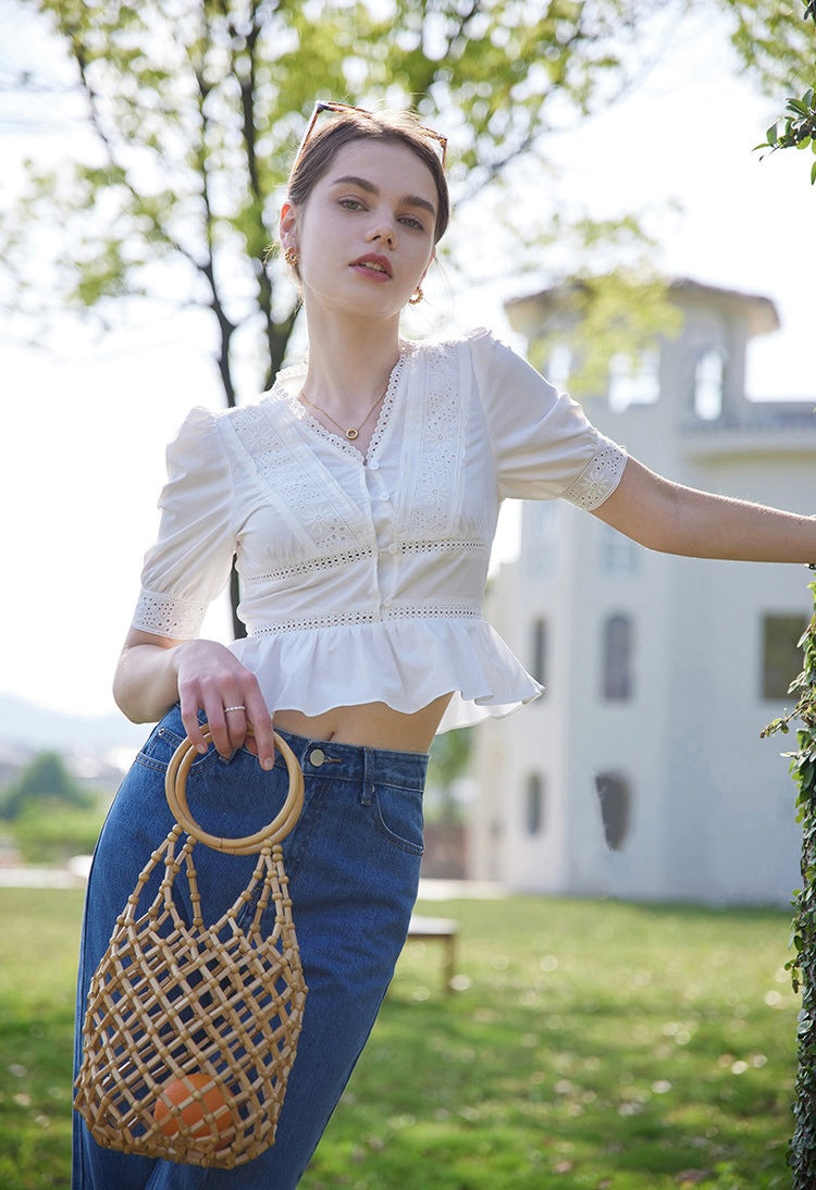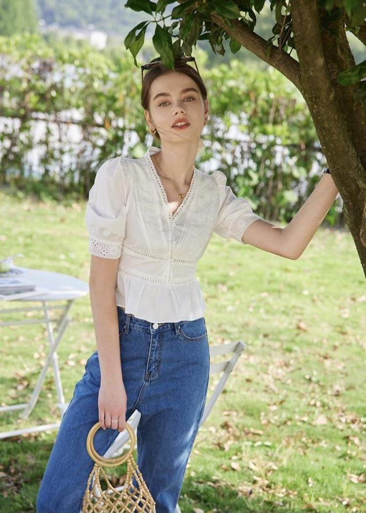 The eyelet lace is applied in a simple design to make it look gorgeous.