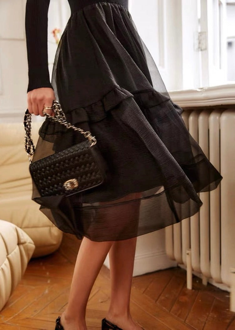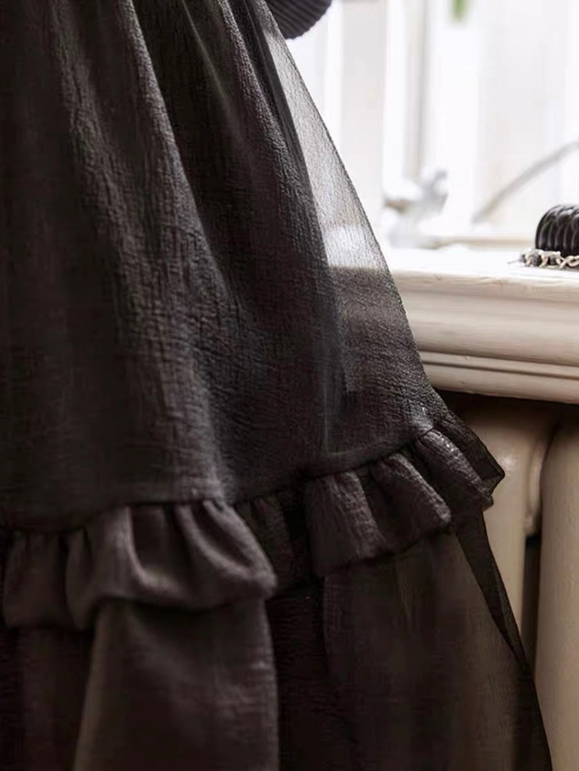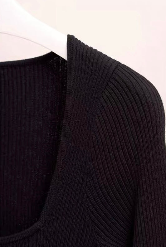 スクエアネックのデコルテ部分とシアー感のある裾で抜け感と動きのある表情をプラス。フィット&フレアデザインでスタイルアップを叶えます。