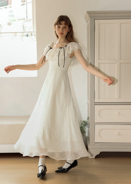 Romantic Polka Dot Off-Shoulder Dress