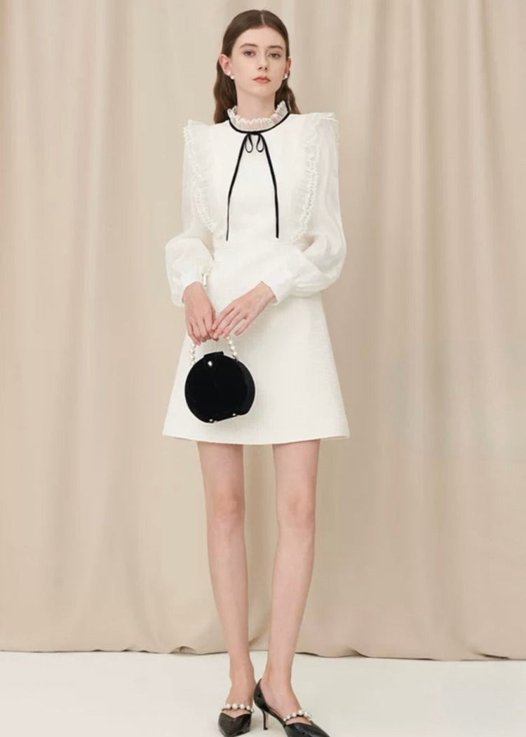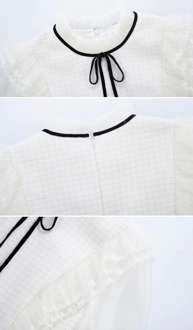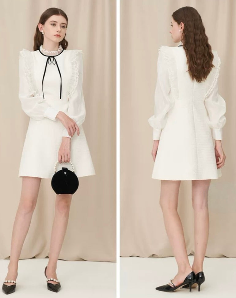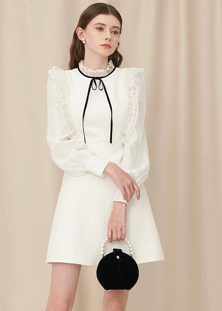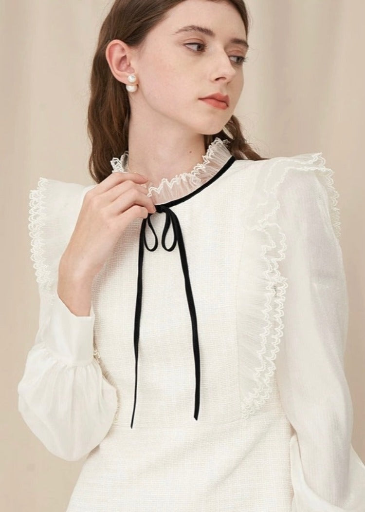 繊細なレースの透け感に少しの色っぽさを感じつつ、刺繍レースの襟元とボニータらしいリボンのアクセントで、より一層エレガントで甘い気分を高めます。