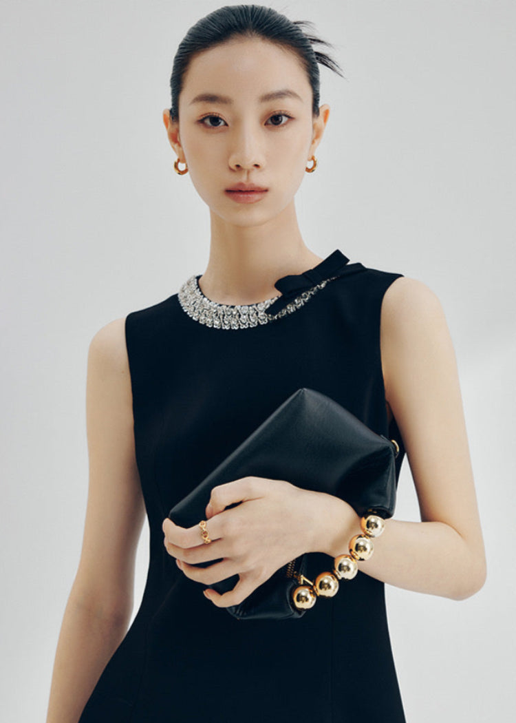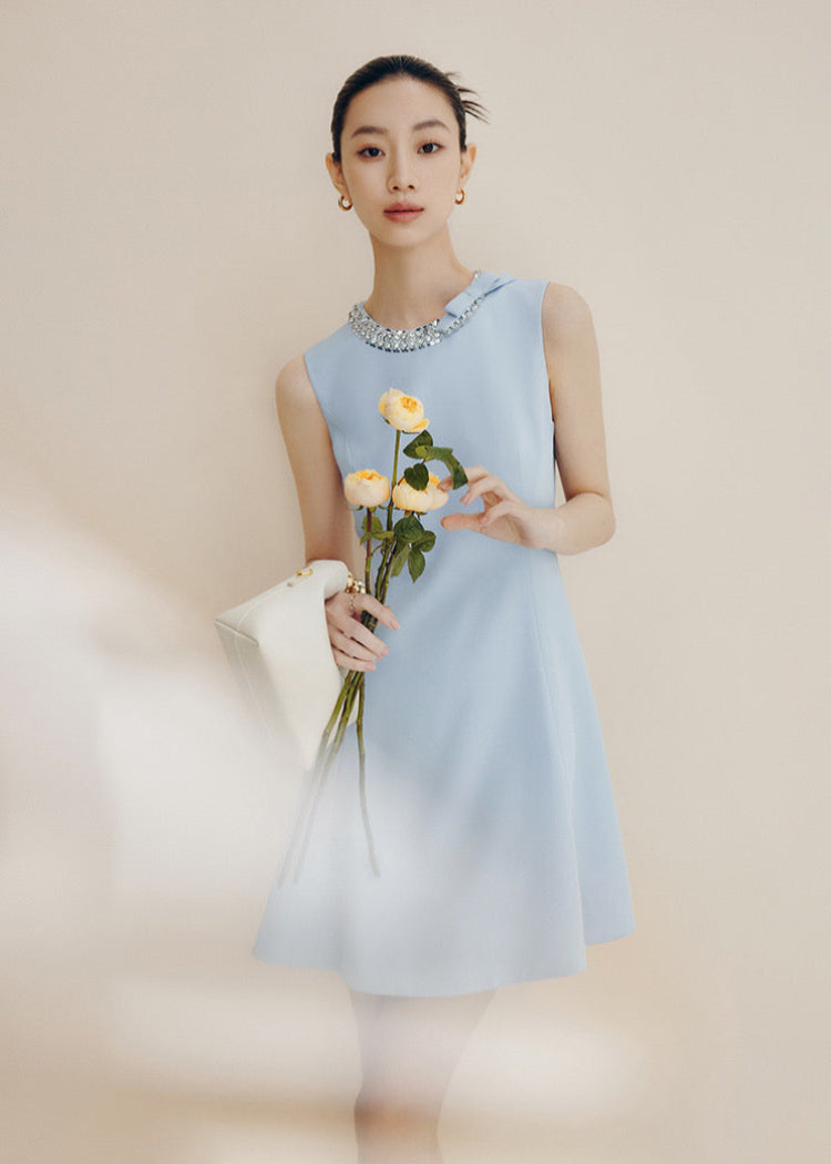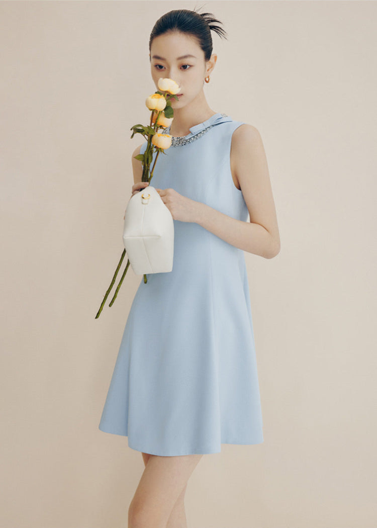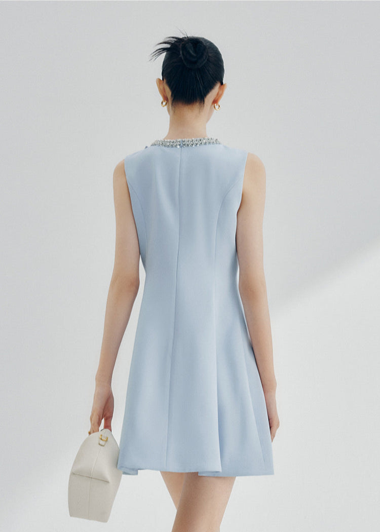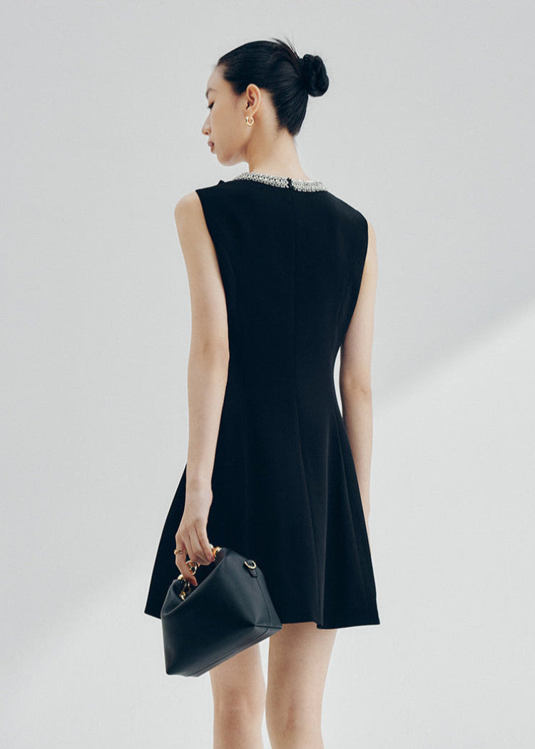 エレガンスと洗練を兼ね備えたAラインミニドレス。