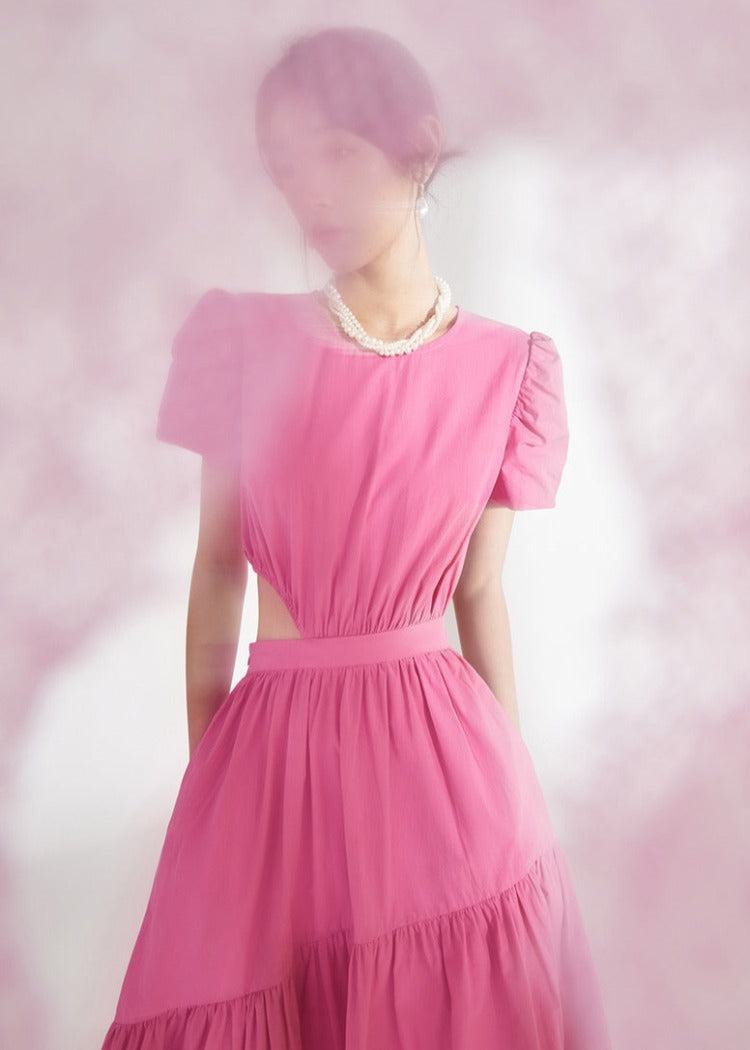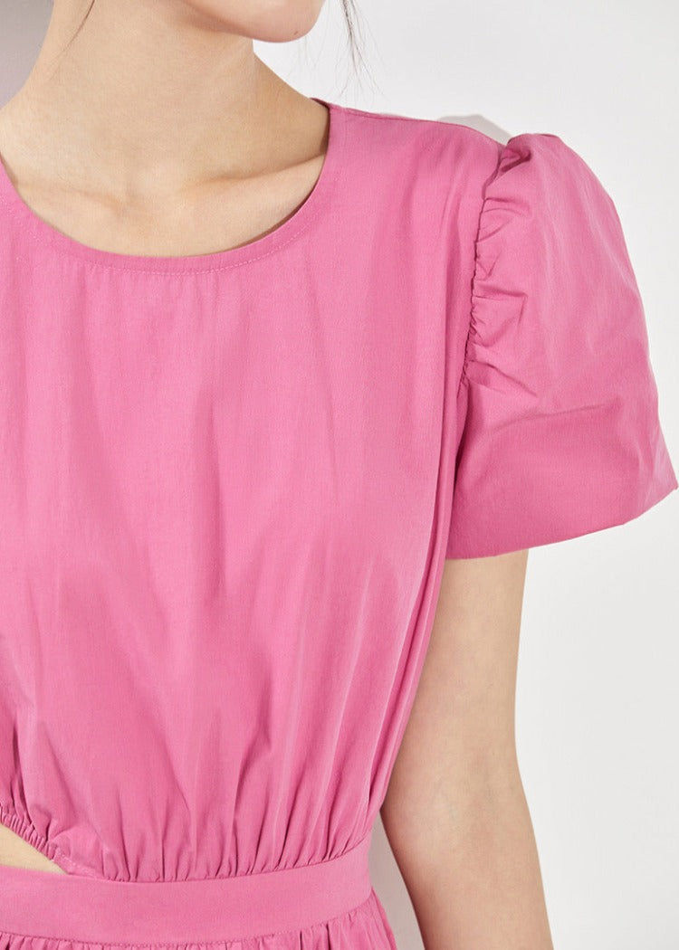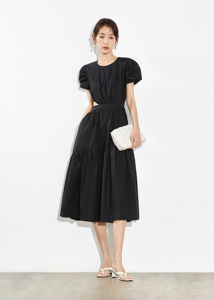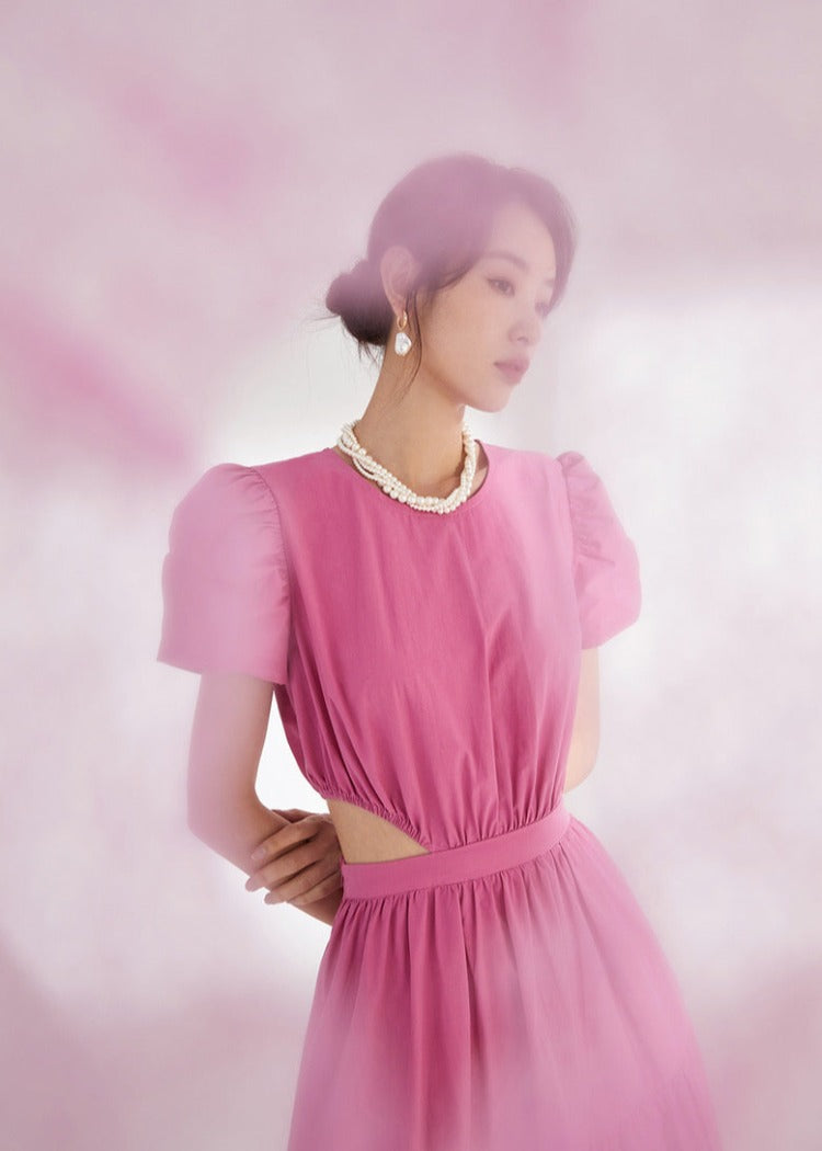 お袖元やウエストまわりにはギャザーを施しメリハリのあるシルエットを叶えました。