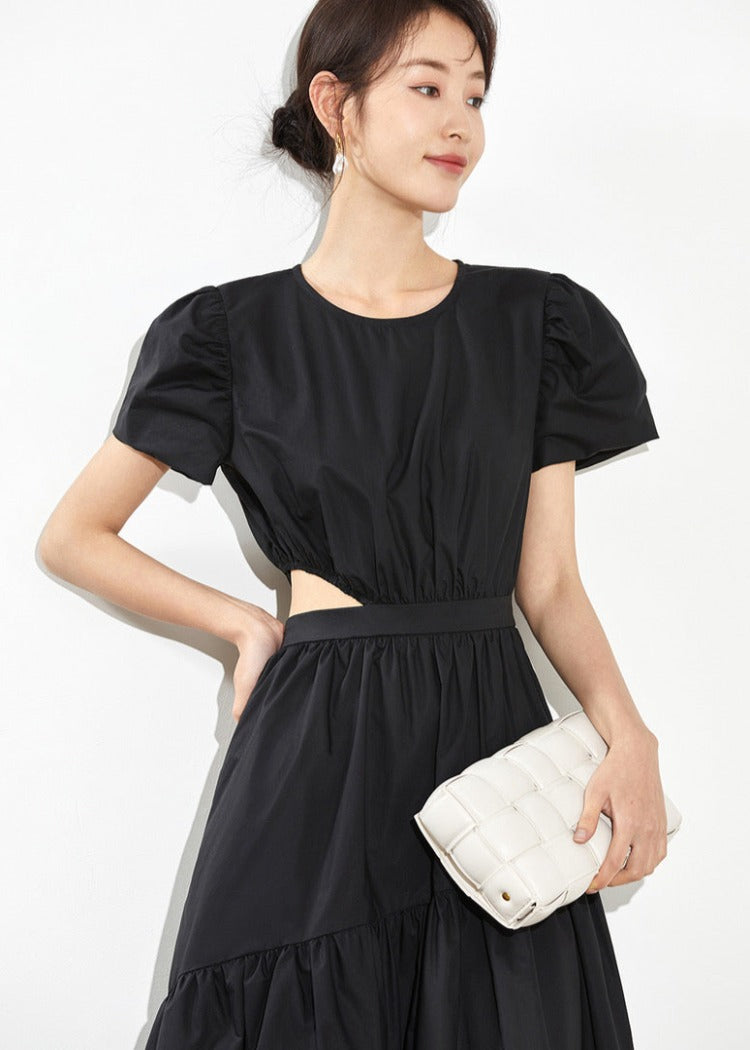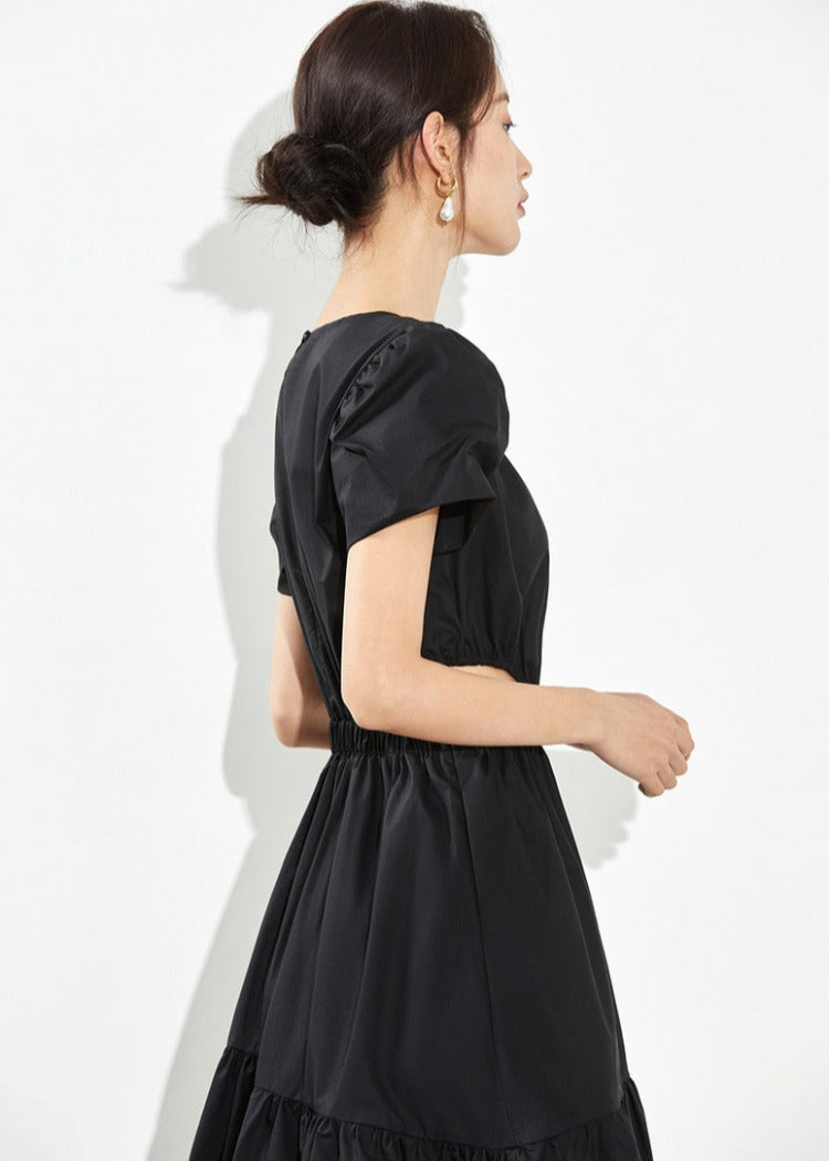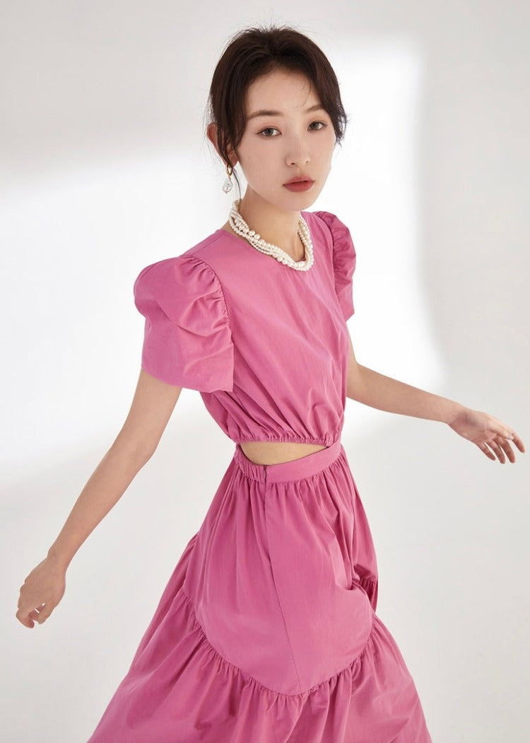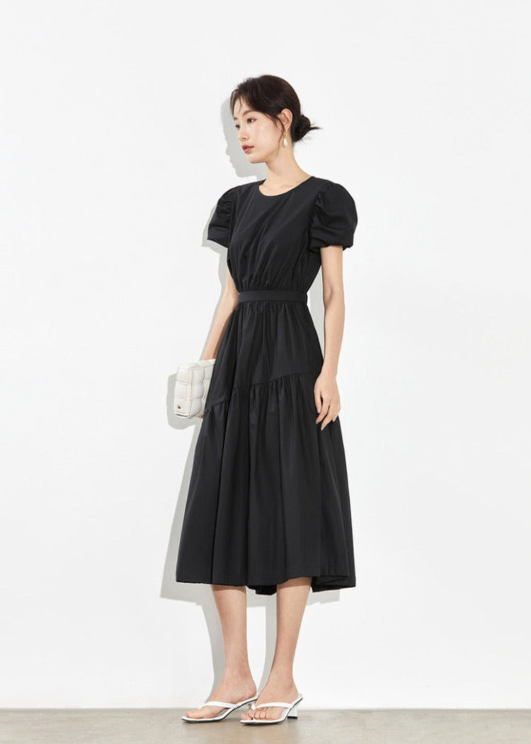 お袖元やウエストまわりにはギャザーを施しメリハリのあるシルエットを叶えました。