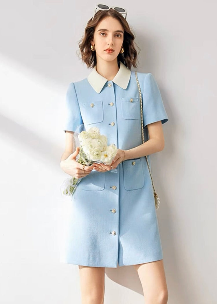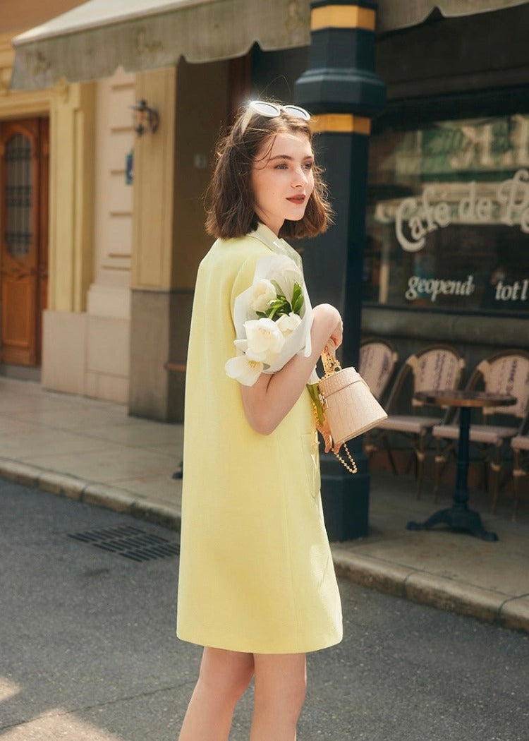 お色はそれぞれパッとお顔が華やぐパステルイエロー、ブルー、ピンクカラーで周りと差がつくワンピースです。