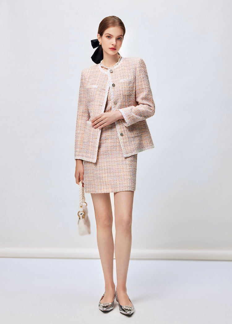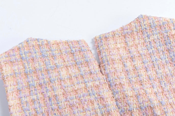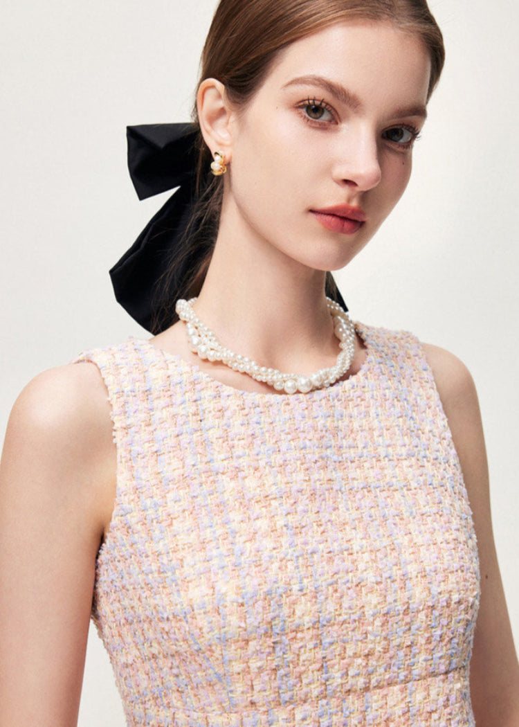 華やかでありながら上品な雰囲気を纏う、パステルツイードドレス。