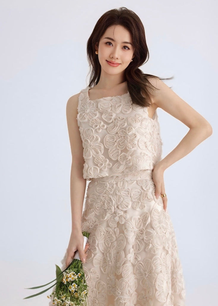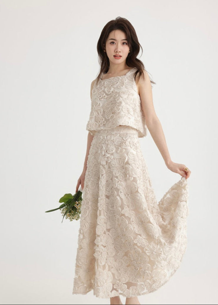 立体感のあるフラワージャカード生地が華やかなクロップドトップス。