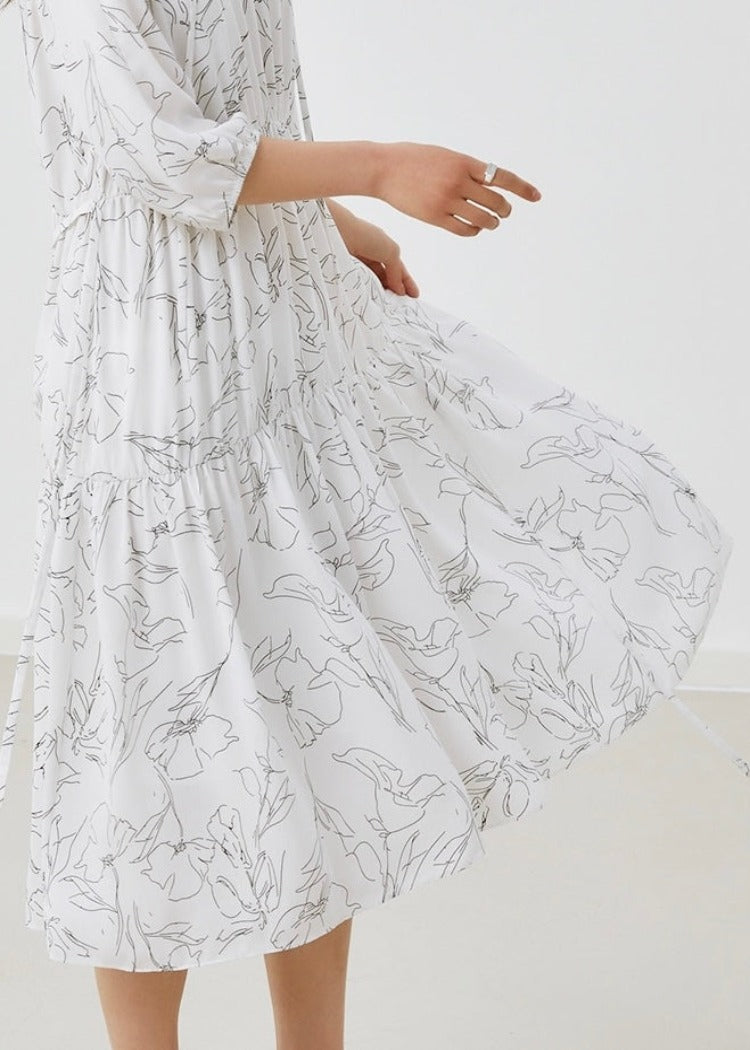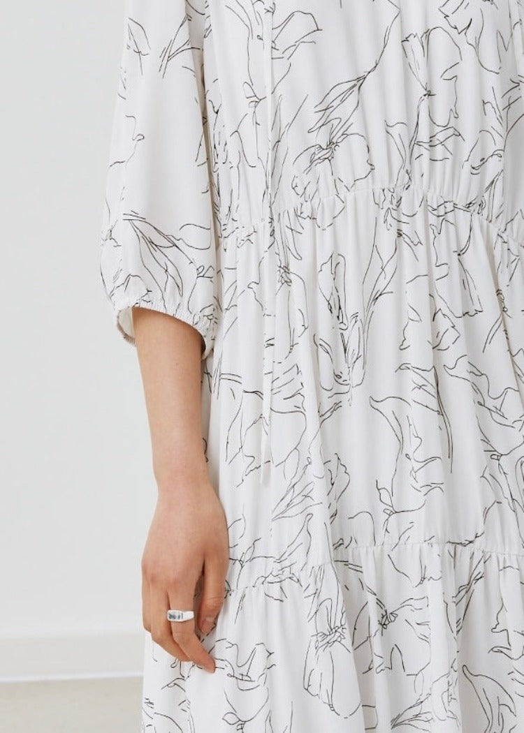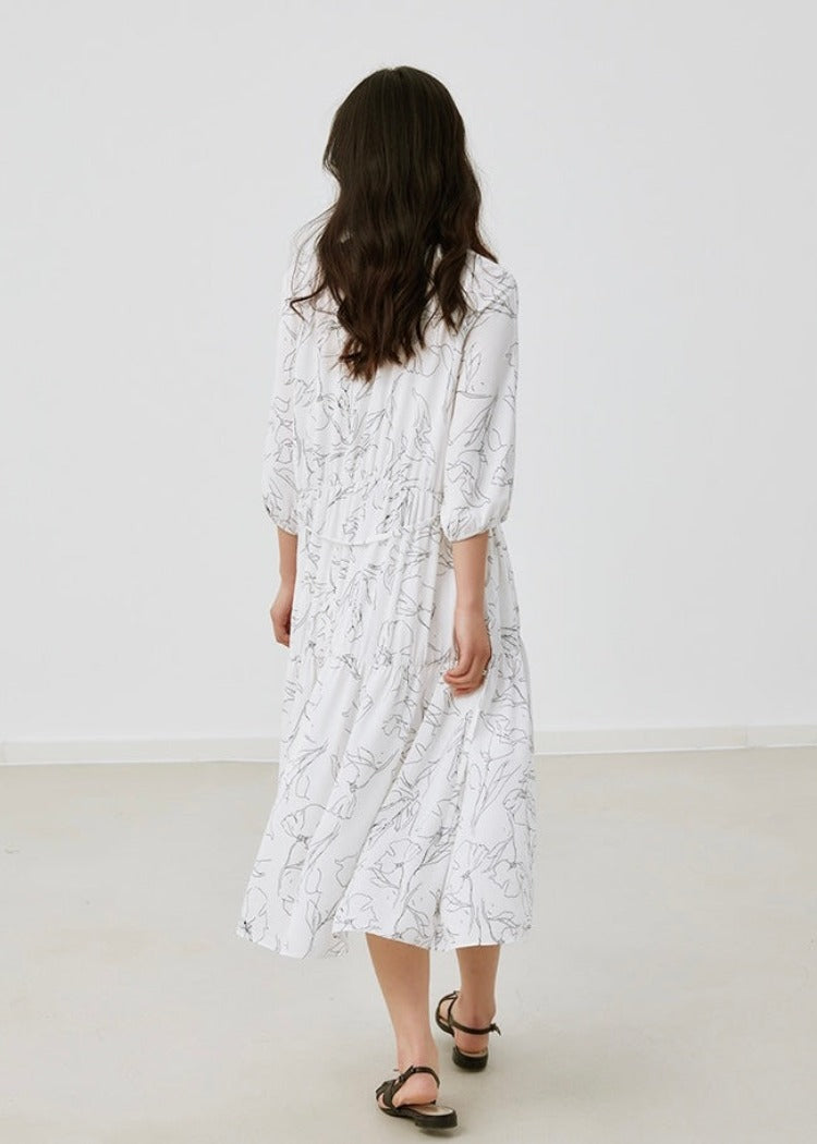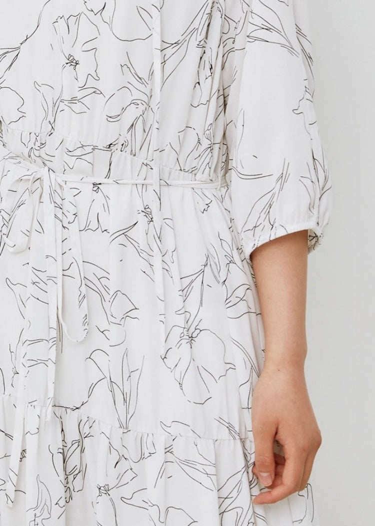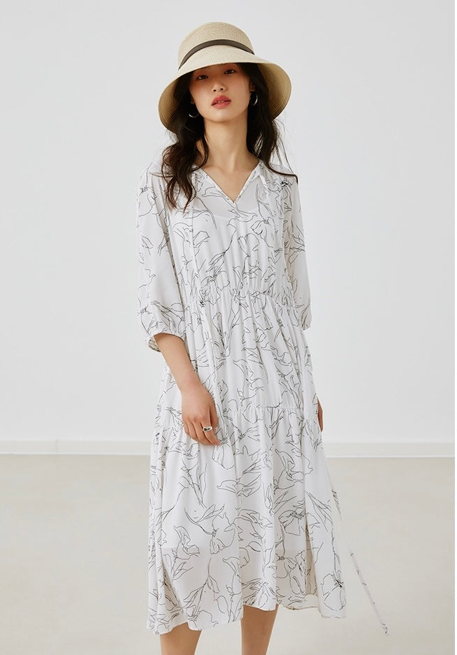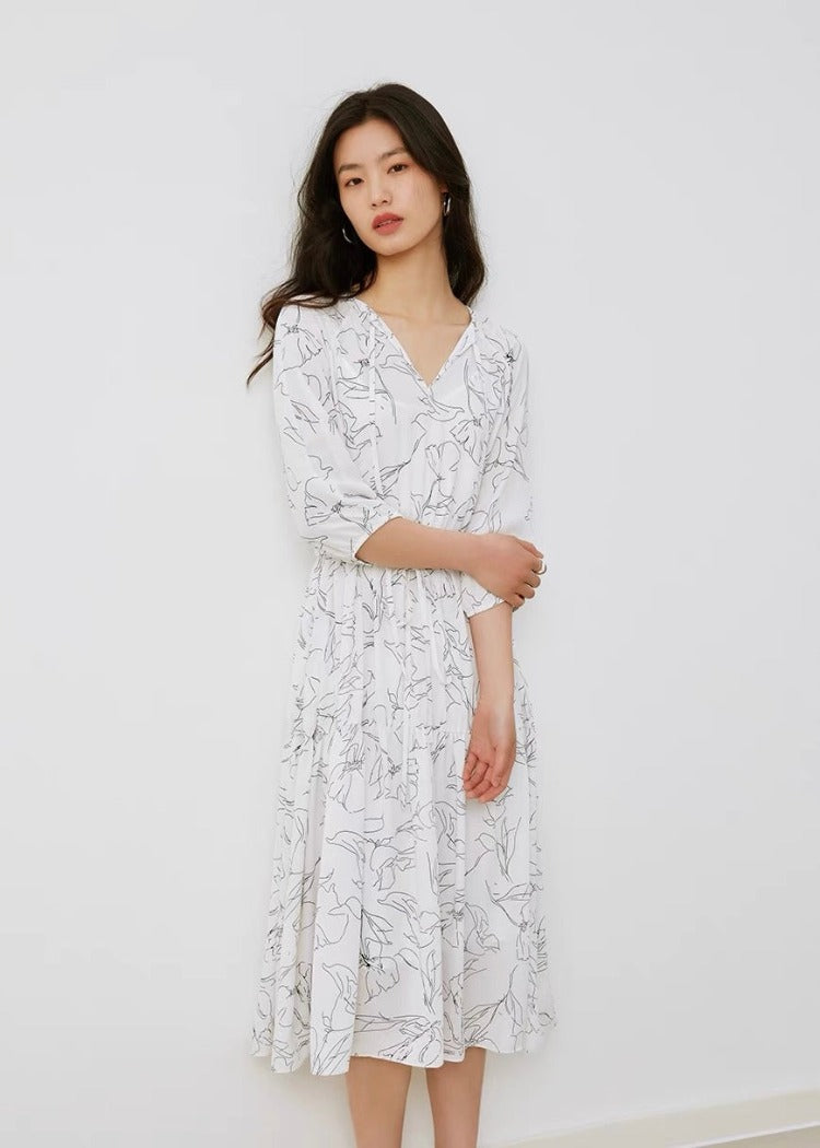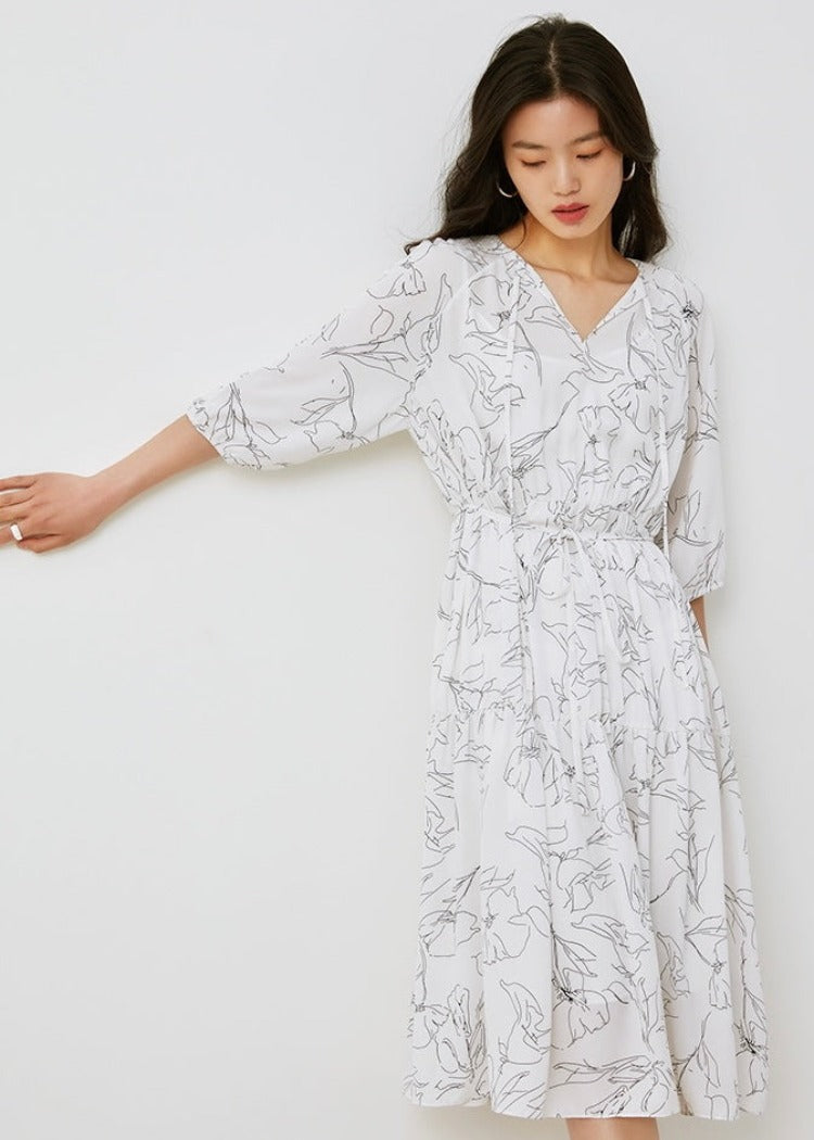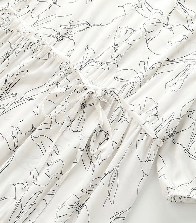 A flower print sheer dress with a simple color scheme and minimal finish.