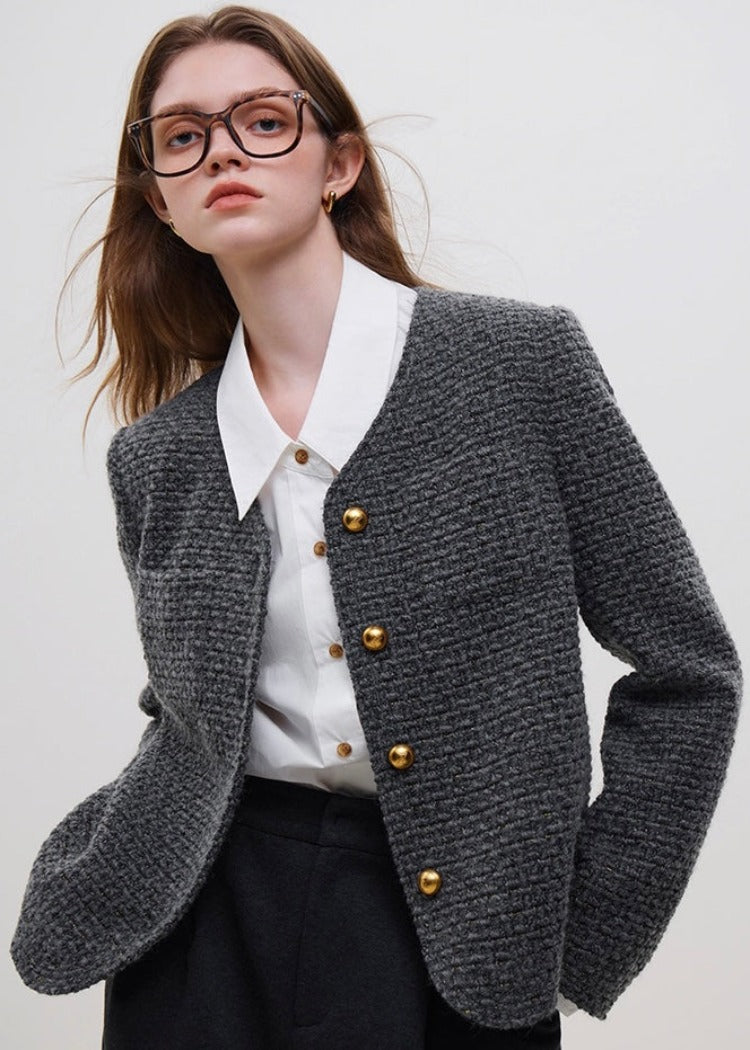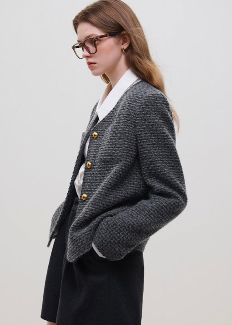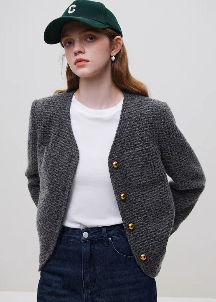 Gold Button V-neck Jacket