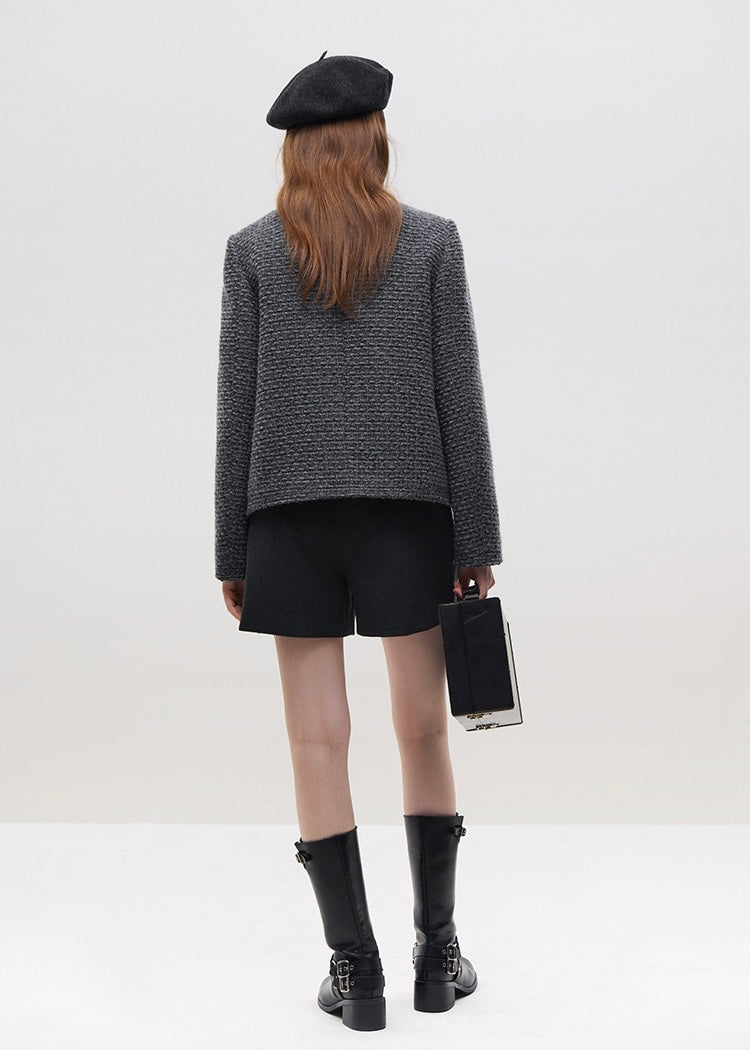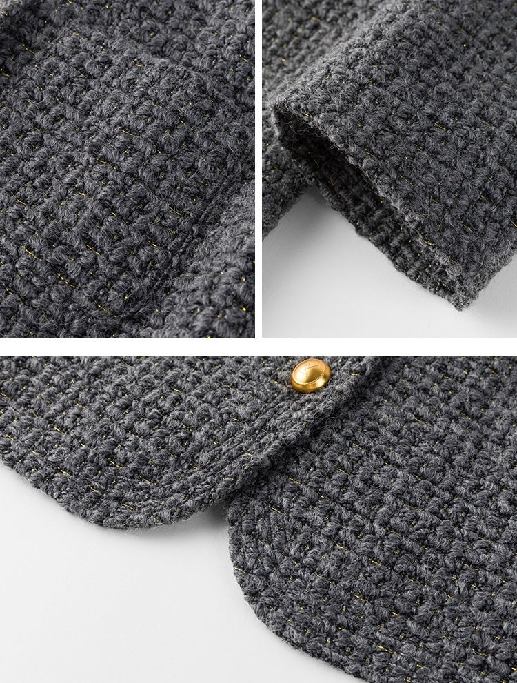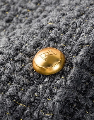 さりげないゴールドラメの糸を織り込み、ゴールドのボタンをアクセントにしたことでメリハリを与えます。