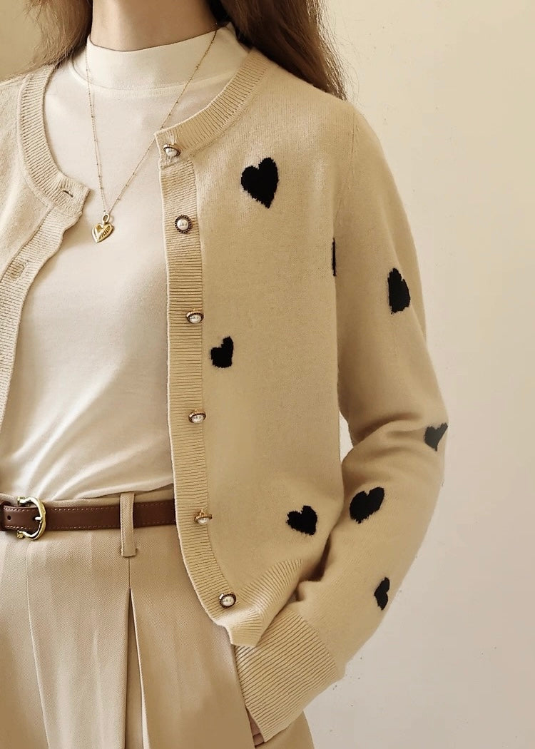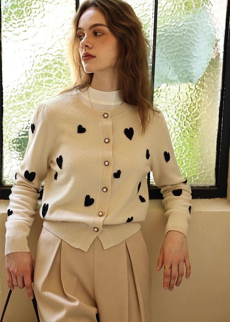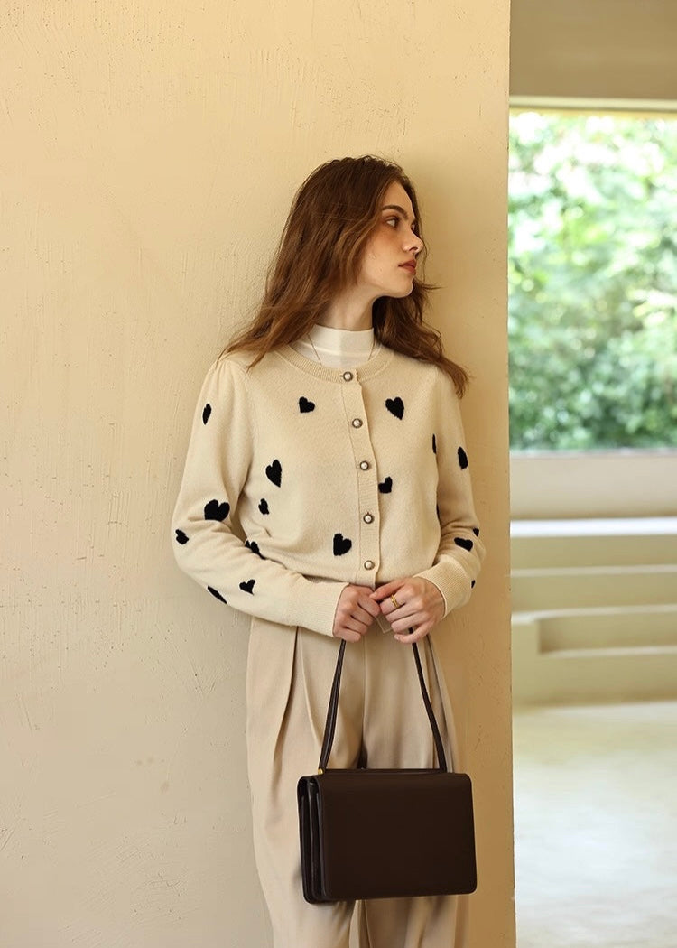可憐なハートモチーフが印象的な、上質ニットカーディガン。