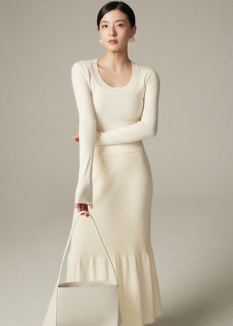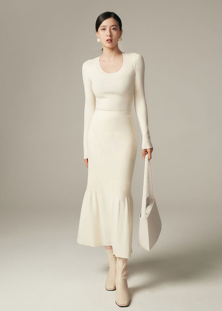 -ありそうでなかった-ニット素材のマーメイドスカートは重宝すること間違いなし。