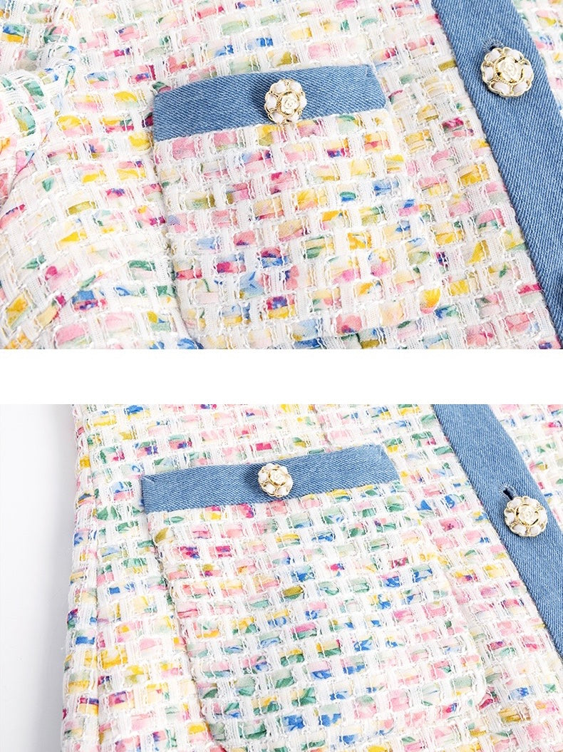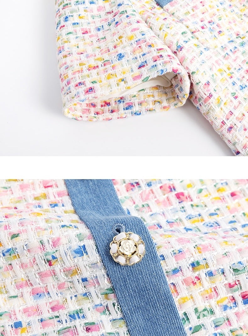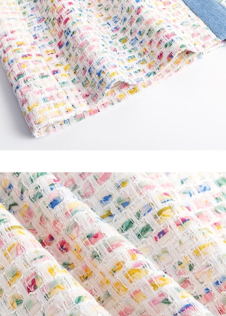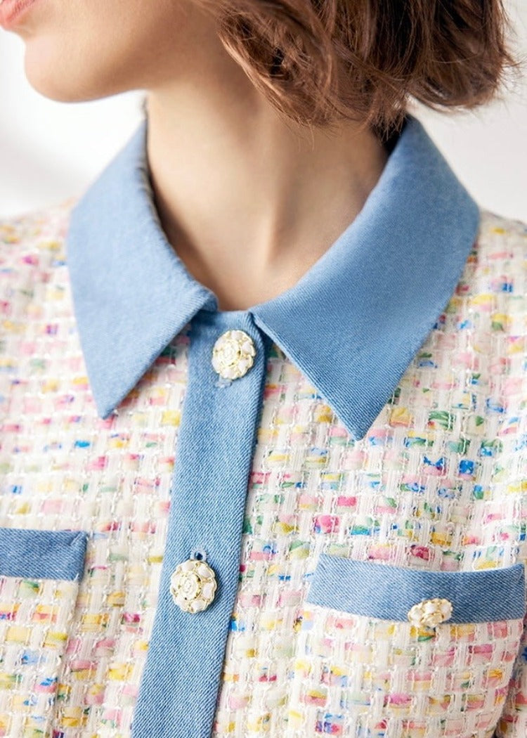 フラワーデザインボタンや、デニム地のアクセントなど細部にこだわり、かわいいがたくさん詰まったこちらのワンピースは春夏の上品カラーコーデとしておすすめしたい一着です。