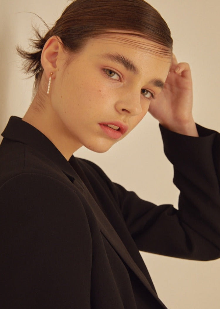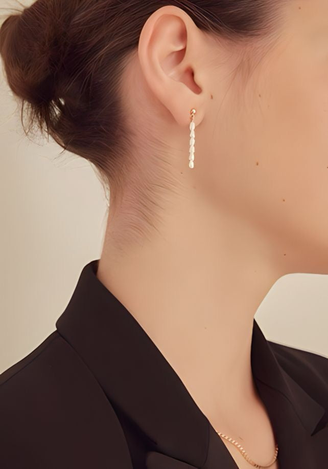 小粒なオーバル型パールを連ねたこちらのピアスはモダンな印象ながらフェミニンな要素を取り入れたデザインです。コンパクトなサイズ感ながらもお顔周りをさりげなく華やかに魅せてくれる優秀アイテムです。ピアスかイヤリングかお選びいただけます。