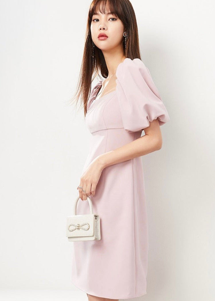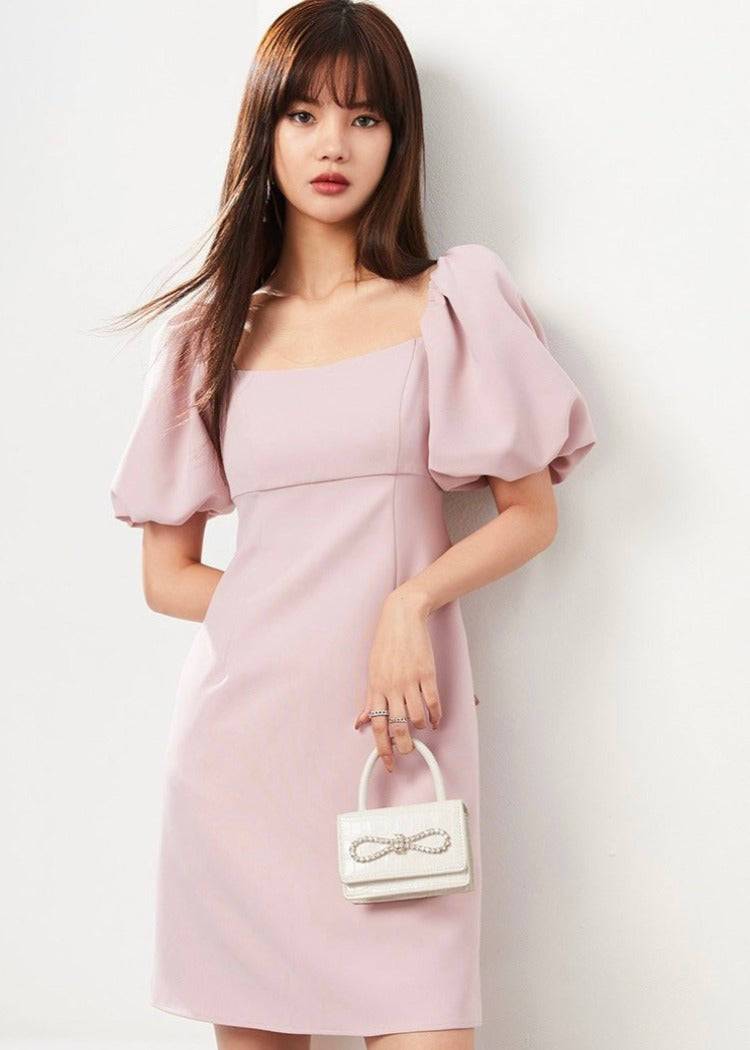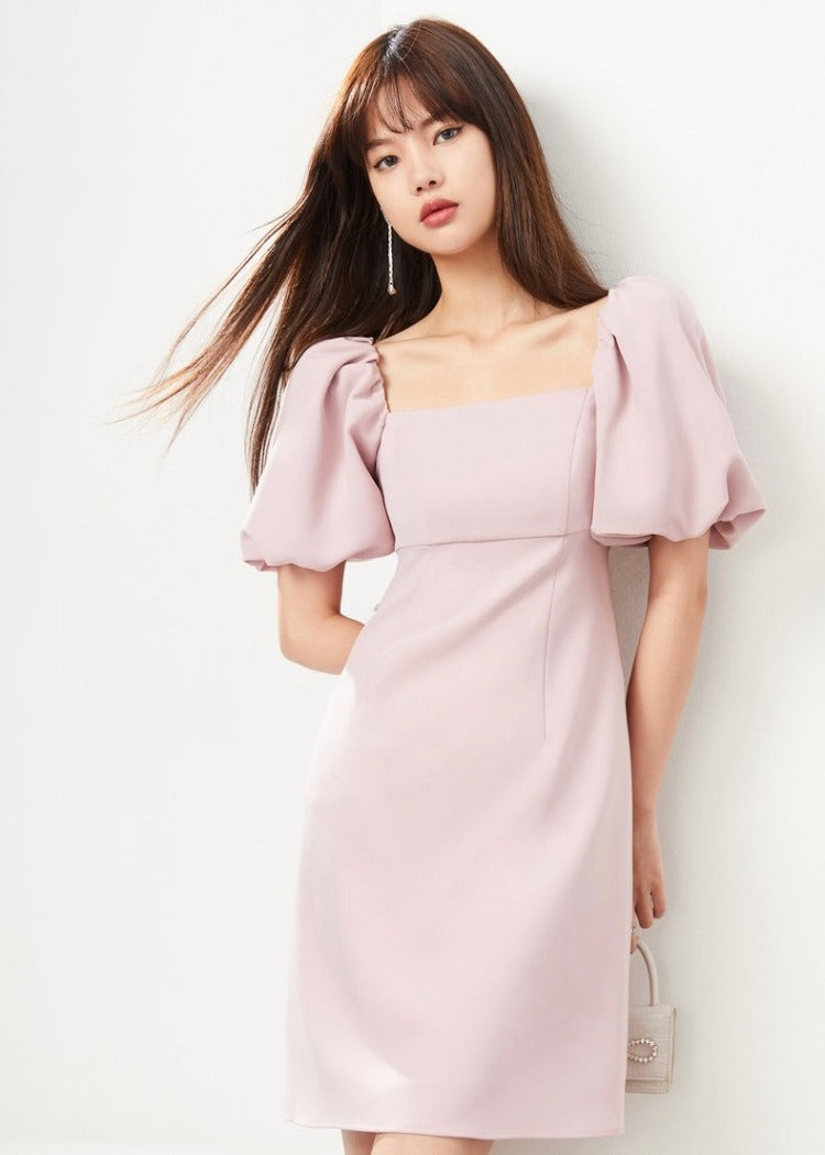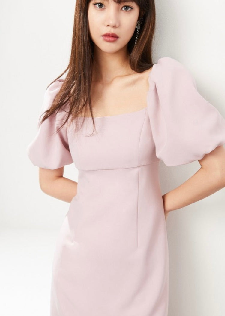 パフスリーブデザインで二の腕をすらっとみせてくれ、短すぎない丈感で上品さを残しました。身体のラインを拾わない絶妙なIラインシルエットに仕上げました。