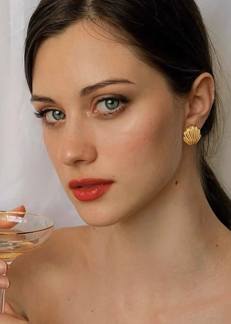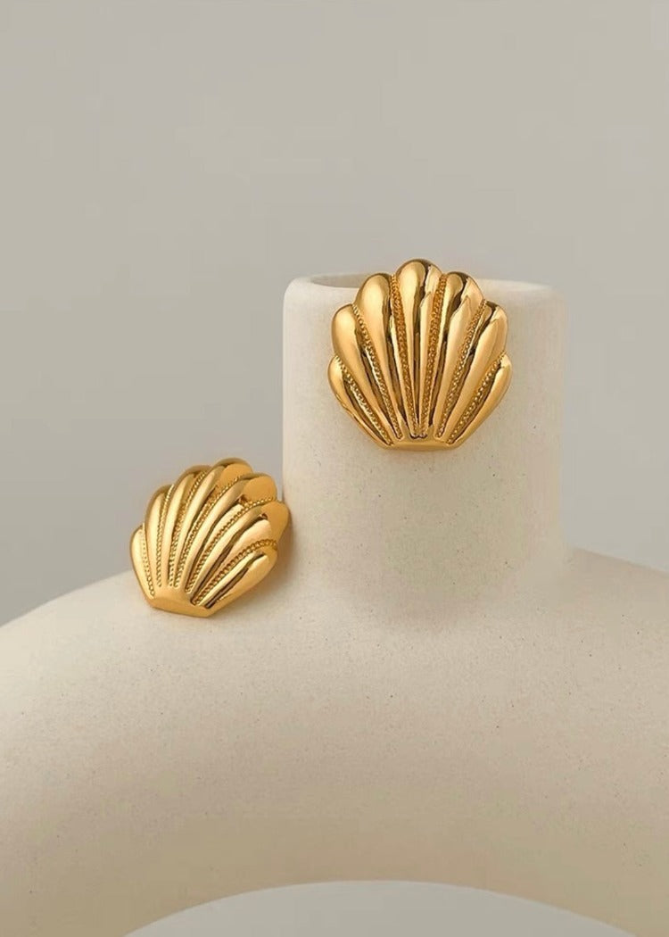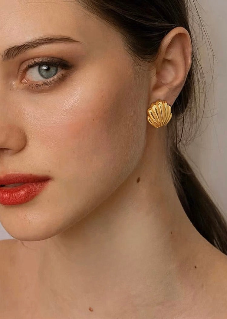 コロンとしたフォルムの貝殻がコーディネートのアクセントになるイヤリング。