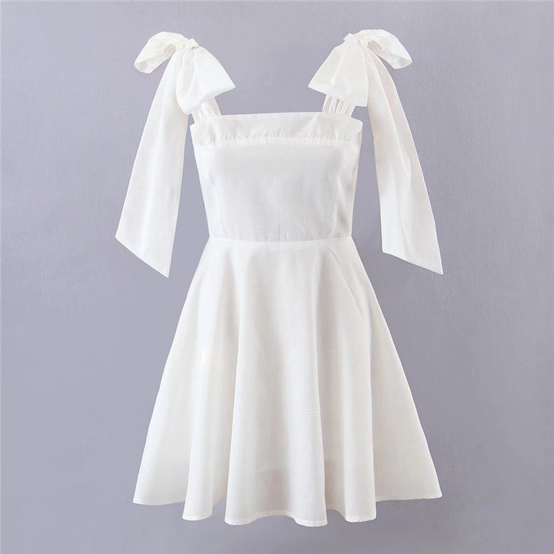 shoulder ribbon tie dress