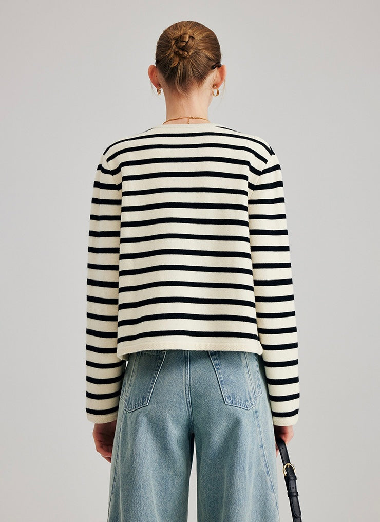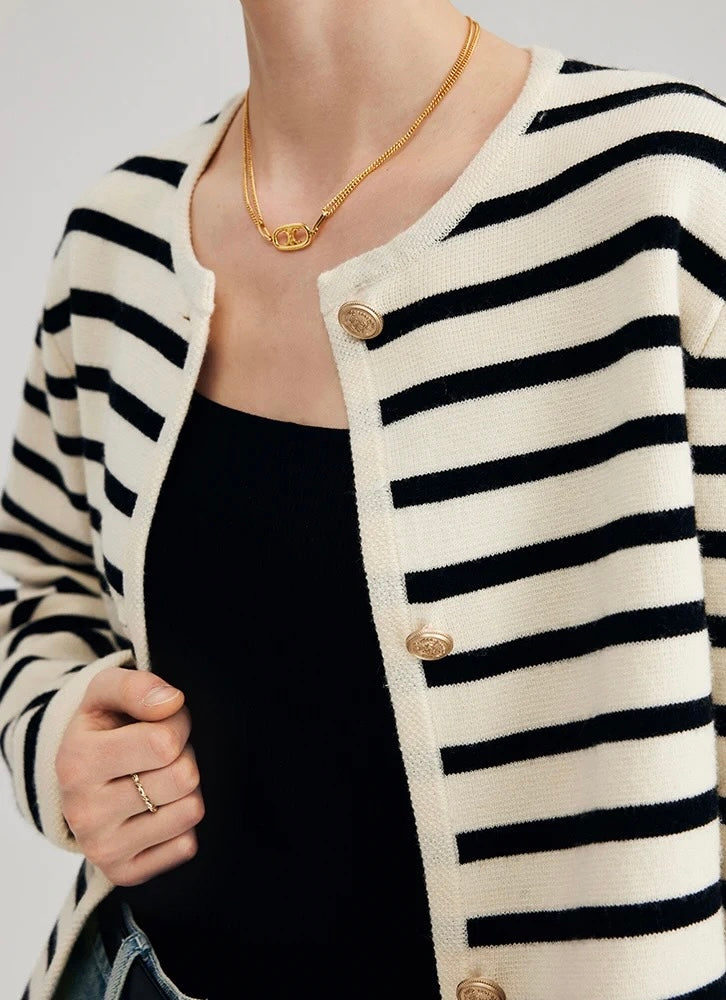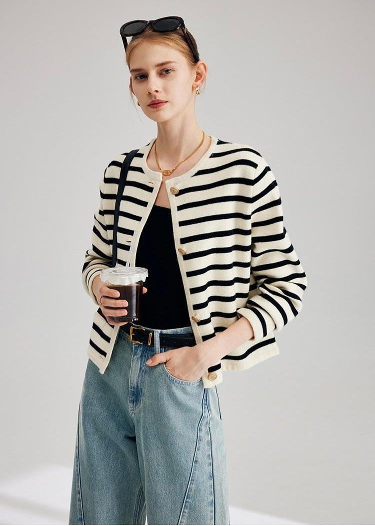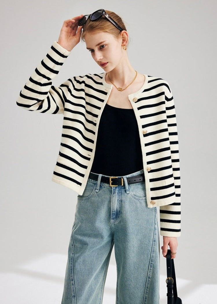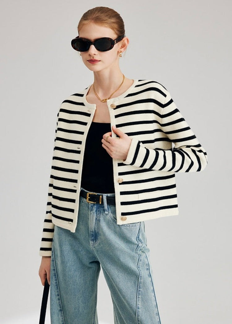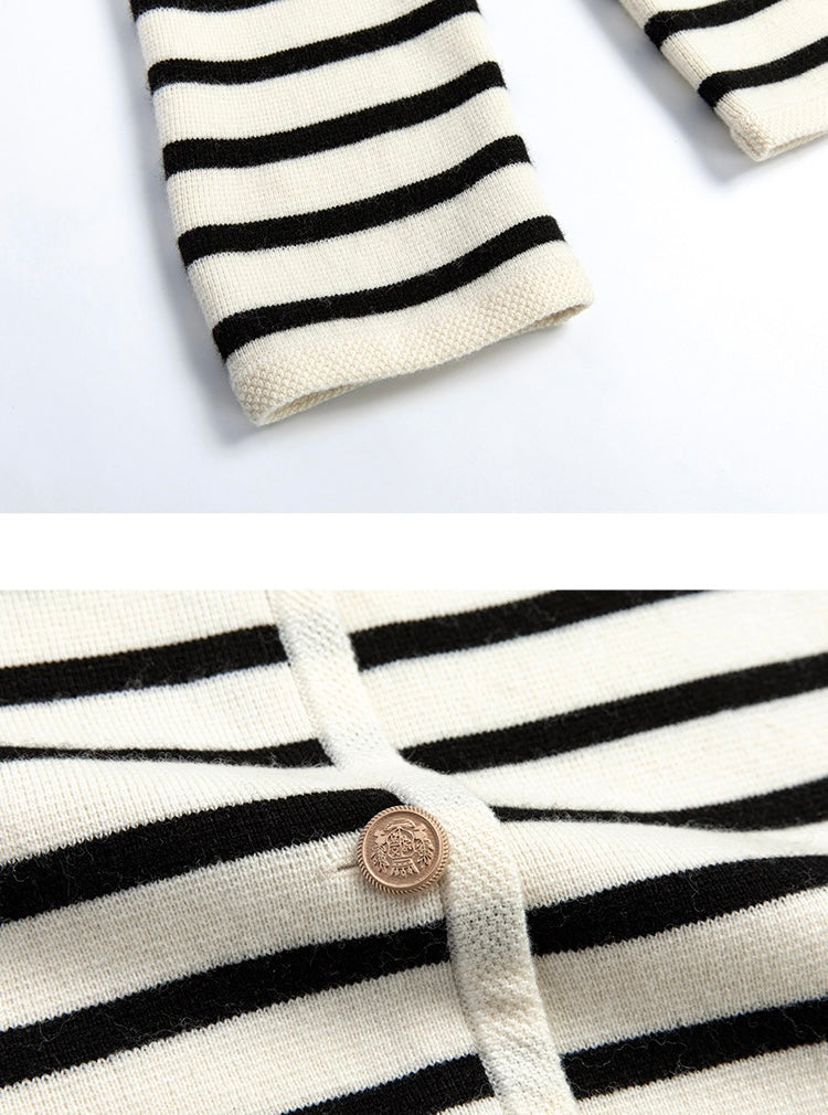 Striped knit cardigan.