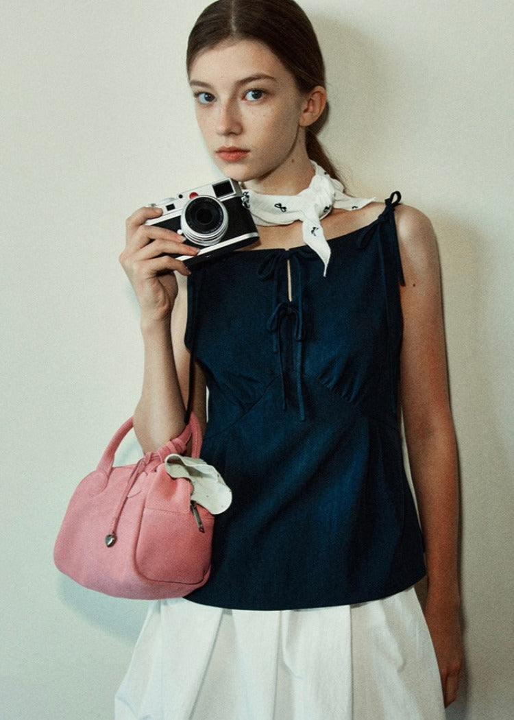 華奢なリボンを施したデザインで顔まわりを華やかに演出してくれます。